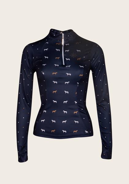Espoir Navy Polka Dot & Horse Everyday Riding Shirt