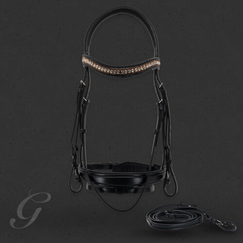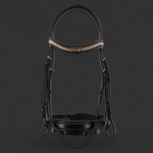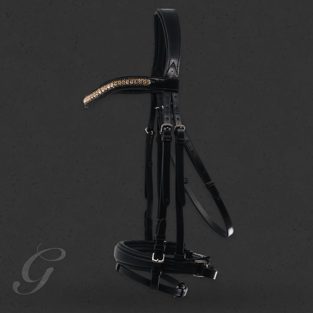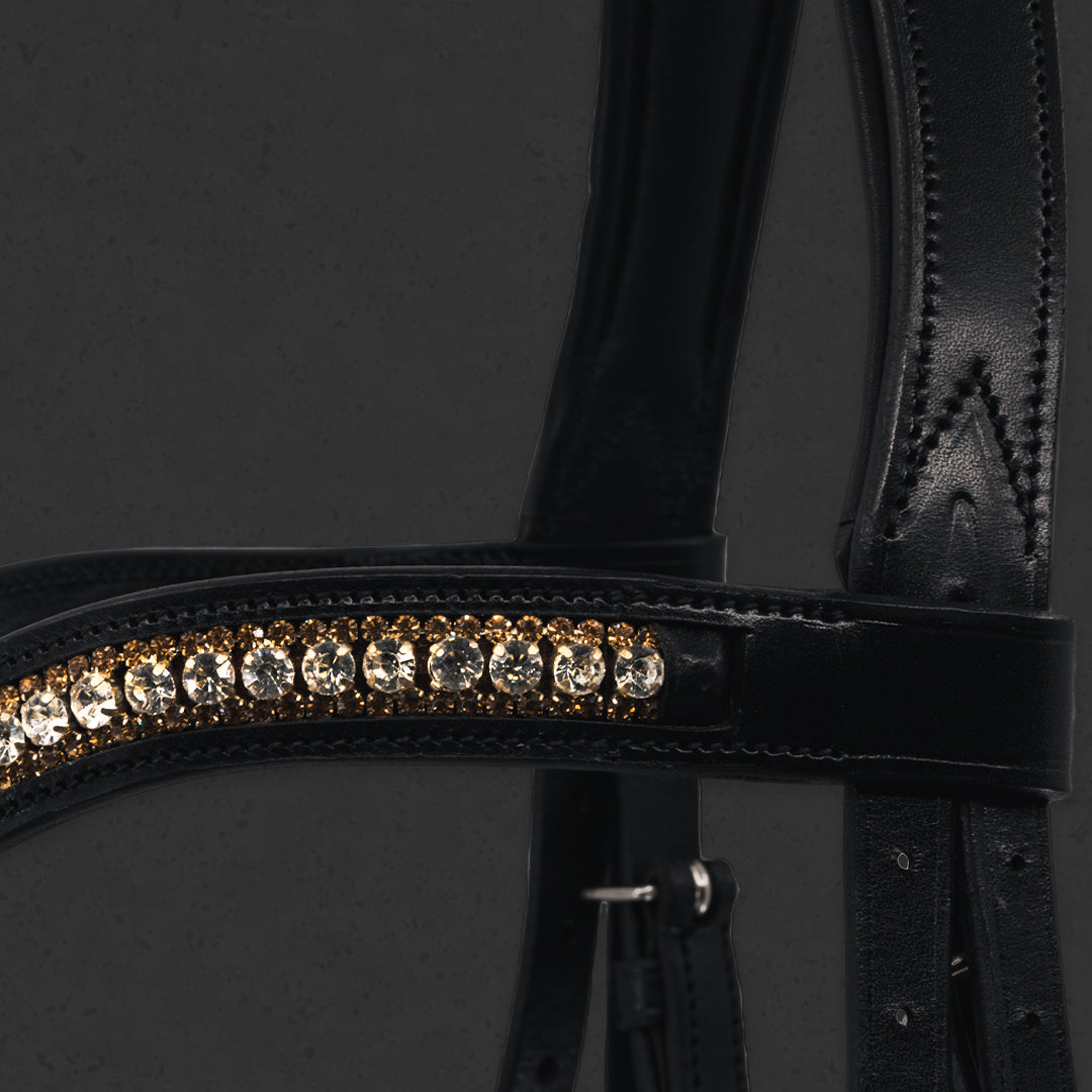The browband features three rows of crystals – a row of solitaire cut crystals encased by two rows of more delicate crystals.