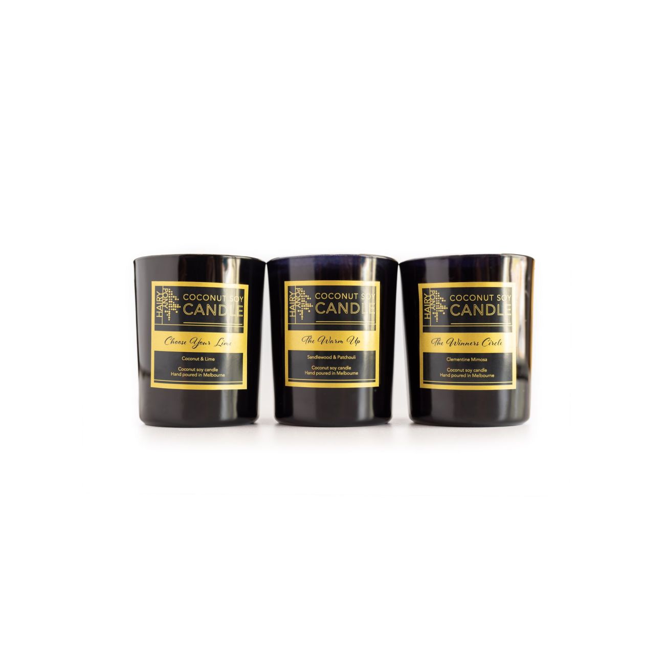 Hand-poured with coconut soy wax, the HAIRY PONY HORSE THEMED CANDLE range is all-natural & proudly made in Australia. There are two Equestrian Candle Gift Set varieties to choose from.