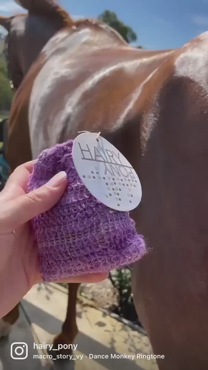 Wet the area you intend to wash on the horse. Place your HAIRY PONY ECO FRIENDLY SHAMPOO BAR into the hessian bag & rinse under water. Rub the bar into your horse’s coat, mane or tail to produce a rich lather. Rinse with water when finished.