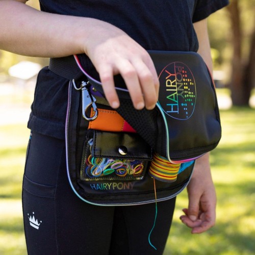 The HAIRY PONY KIDS PLAITING APRON is made from the same durable material as our HAIRY PONY PLAITING APRON, with colourful rainbow accents. The HAIRY PONY KIDS HORSE PLAITING KIT includes all of your favourite features from our flagship apron, including comb slots, mesh & material pockets, thread reel & magnetic needle cushion.