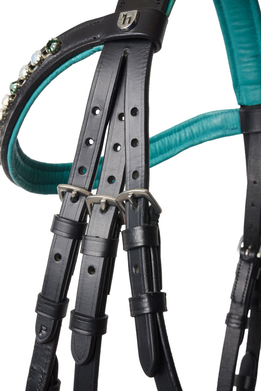 The Magic Carousel Bridle is a bright addition to your pony’s tack, thanks to it’s colourful soft padding at crown and browband. The combined noseband features a lining in the matching colour. Colourful crystals in the browband make your pony stand out in teh arena. Don’t forget to get the matching Magic Carousel Rainbow Reins!