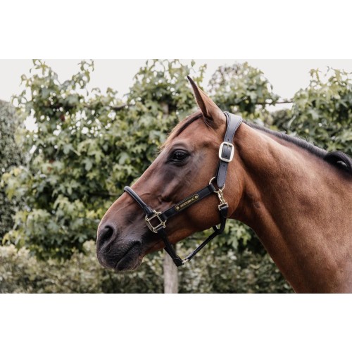 All closures are gold colored and are therefore a perfect match with our leads. The Anatomic Leather Halter features a gold colored plate with our engraved logo. It can be turned over and personalized.