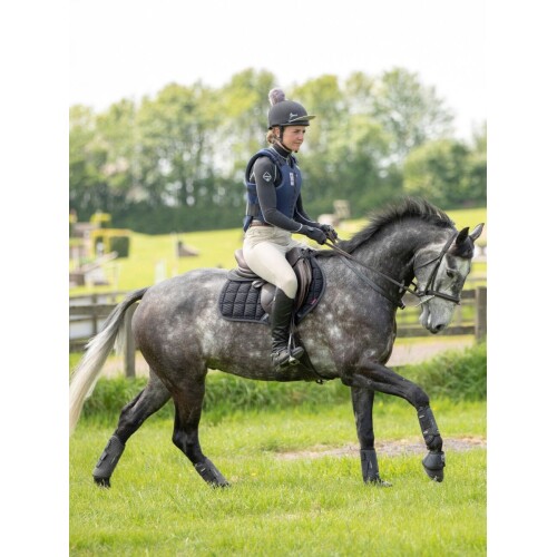 Combining the cutting edge LeMieux style and the latest in light weight technical mesh fabrics. The unique blast foam core has been through a process where hot air is forced through the memory foam under pressure to create the extremely breathable yet supportive and lightweight perforated material.