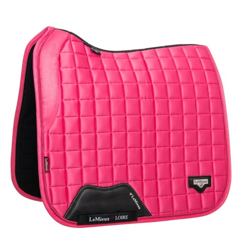 The whole pad benefits from a new extensively researched soft friction-free suede binding which is specially fabricated to smoothly contour the edges. This new technique helps retain the perfect saddle pad shape and binding profile.The textured pu leather girth protection area is complimented by an embossed logo and carries the usual signature LeMieux lower girth strap with its inner locking loops. The pad has of the unique metal badge on a leather mount in the lower back corner.