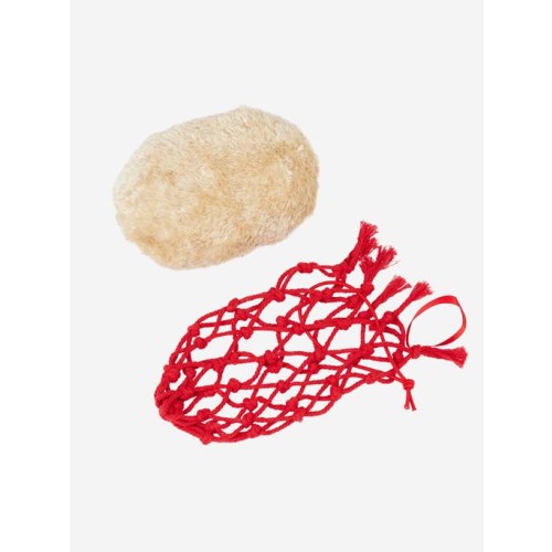 There’s an elastic opening for filling the haynet with the fluffy hay bale, and a short hanging loop for safe feeding.