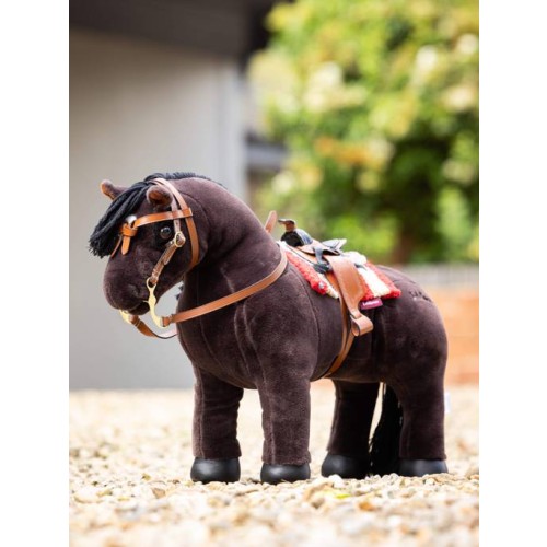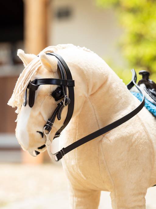 Encourage mini cowpokes to learn how to saddle up with the Toy Pony Western Bridle from LeMieux. This Western-style leather bridle features a decorative browband, split rein and shank bit that looks just like the real thing – only made miniature for your mini pony.