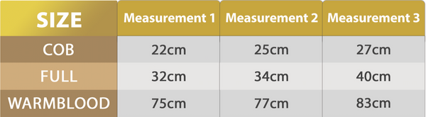 Available in sizes cob, full and warmblood.