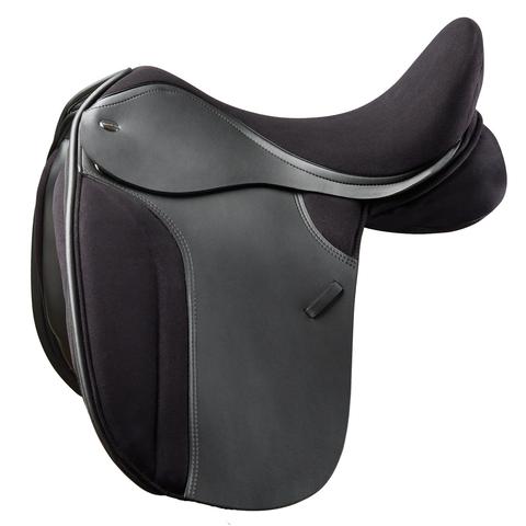 The T4 Dressage Saddle has a dressage specific tree with moveable under-flap thigh blocks which combine to help the rider maintain a balanced dressage position.