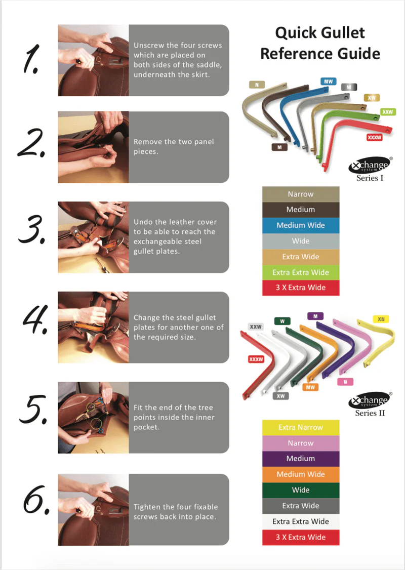 Whether you’re accommodating seasonal changes, muscle growth, or a new horse, this interchangeable gullet plate system allows you to adjust your saddle width quickly and accurately.